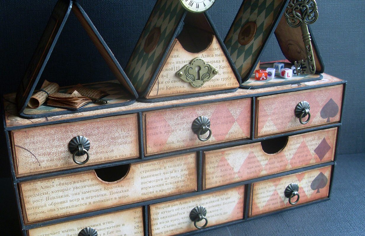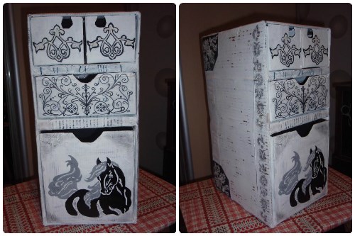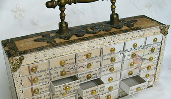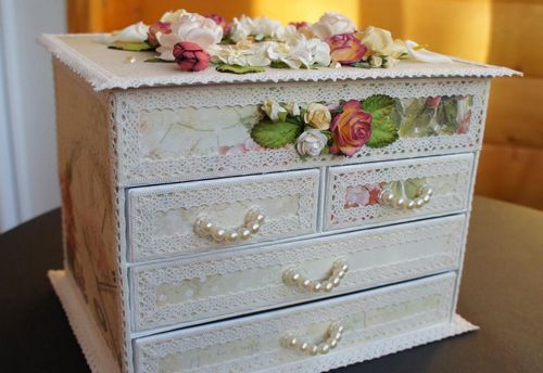 جميلة صغيرة من الورق المقوى decoupage من الأدراج
