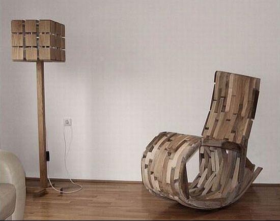 أثاث الميزانية لغرفة المعيشة من شكل غير عادي مصنوعة من مواد غير عادية ، مصنوعة باليد