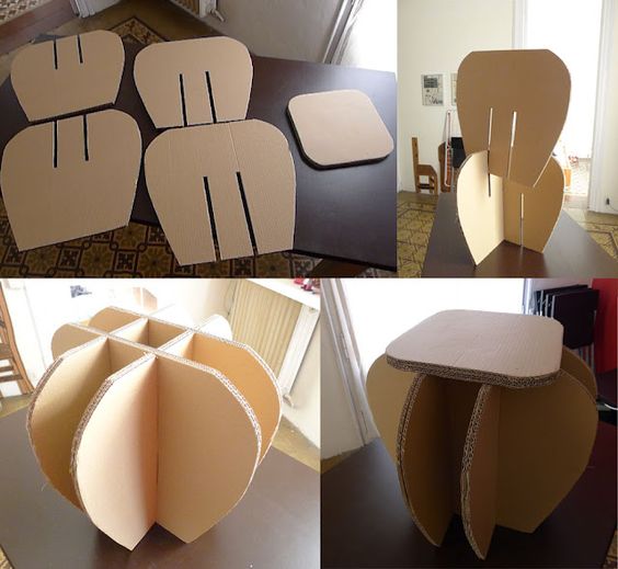 لن نفكر في مثال محدد لكيفية صنع الأثاث من الورق المقوى. لكننا نعطي المبدأ العام للتصميم مع تعليمات مفصلة.
