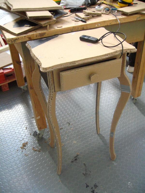 الجدول الأصلي مع الساقين منحوتة من الورق المقوى