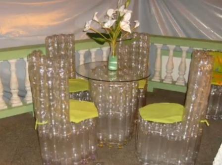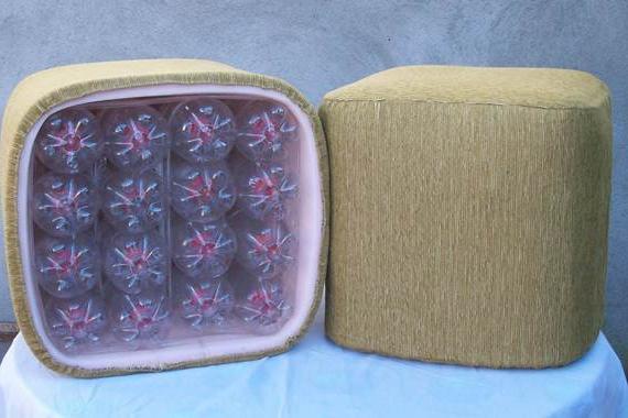 مصنوعة أشياء مثيرة للاهتمام للمنزل من البلاستيك. على سبيل المثال ، من السهل صنع كرسي بيديك من مواد الخردة ، إذا كانت هناك زجاجات بلاستيكية كافية. يتم استخدام زجاجات سعة لتر ونصف ، والتي يتم تصنيع الإطار منها. لعنصر واحد من الإطار تحتاج ثلاث زجاجات. أول واحد كامل ، والثاني مقطوع إلى النصف (الجزء العلوي أقصر). يتم إدخال الجزء العلوي في الجزء السفلي من الزجاجة مع سدادة أسفل. ثم يتم وضع زجاجة كاملة فيها ، ويوضع الجزء السفلي من الزجاجة الثالثة في الأعلى.