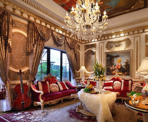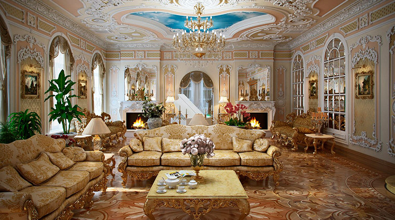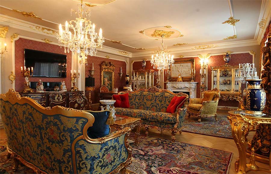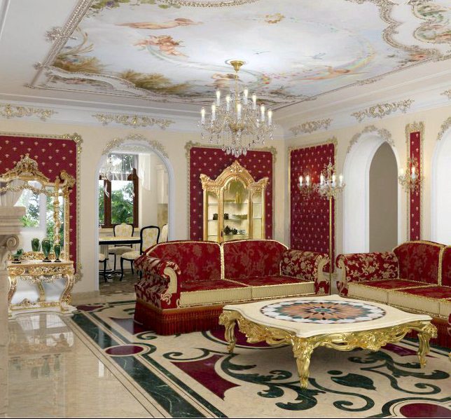 غرفة المعيشة الفاخرة مزينة بأسلوب الباروك