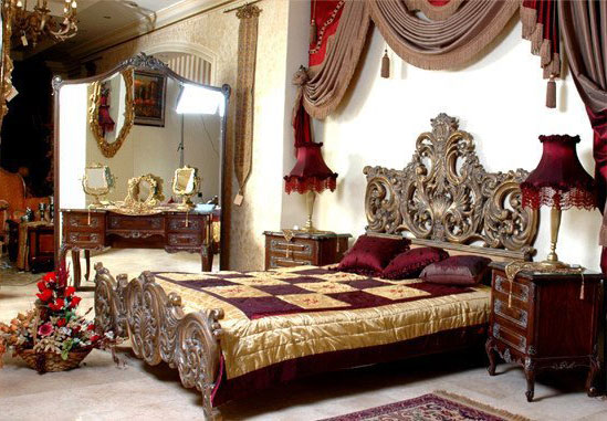 شكل أثاث خشبي مزخرف لغرفة النوم على طراز الباروك