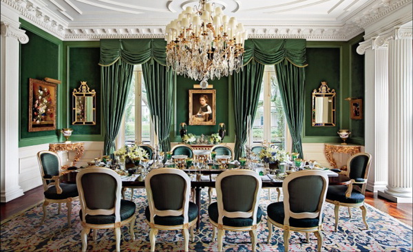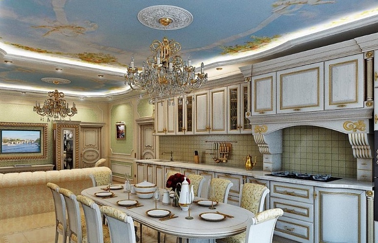 أثاث فاخر جميل في غرفة المعيشة وغرفة الطعام على الطراز الباروكي