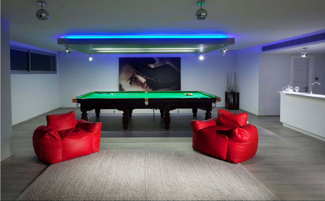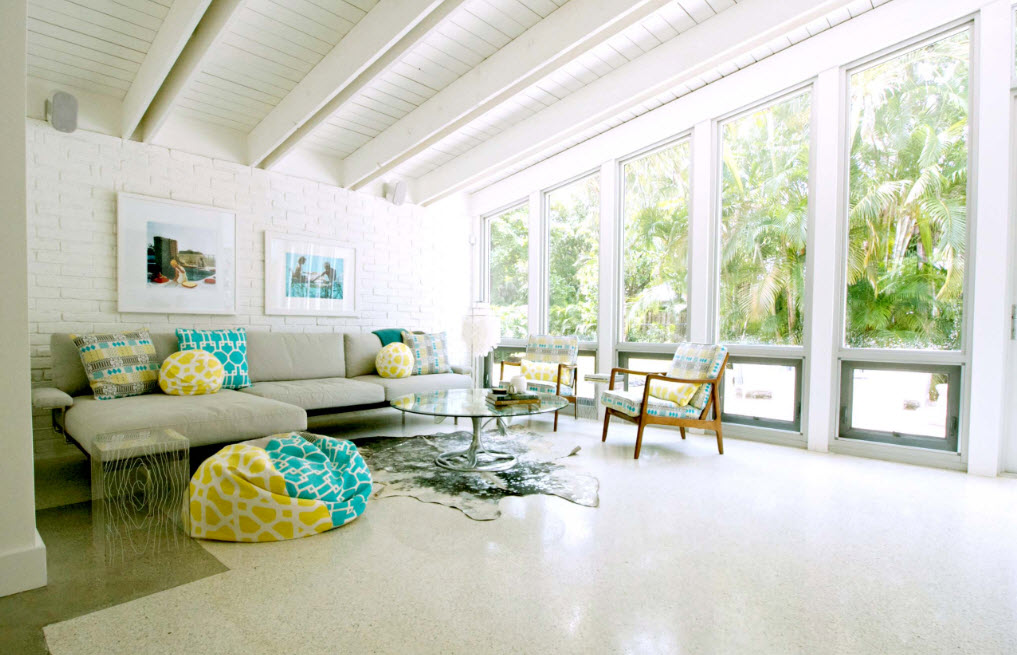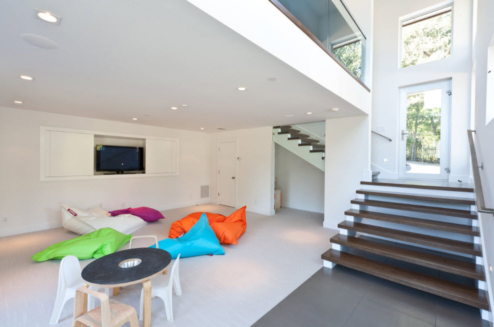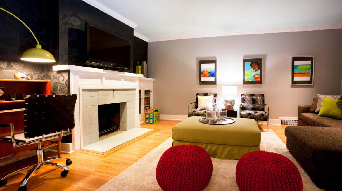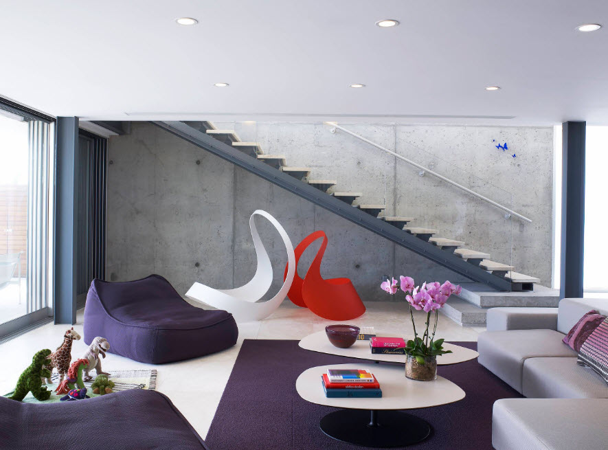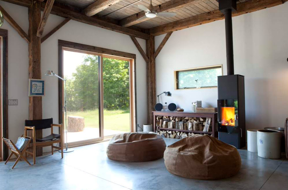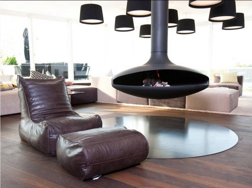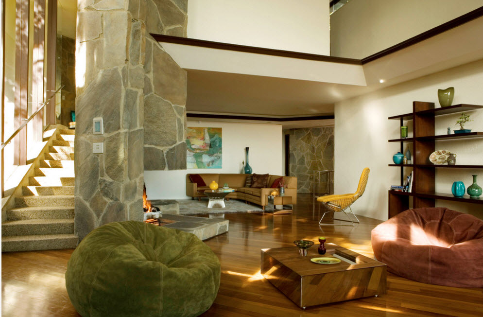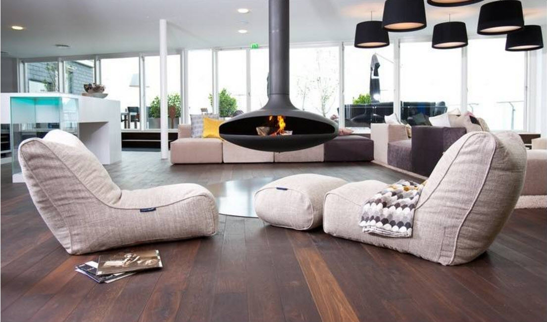 في نماذج نمطية مختلفة من تصميم غرفة المعيشة ، هناك أشكال مختلفة من الكراسي بدون إطار قابلة للتطبيق.
