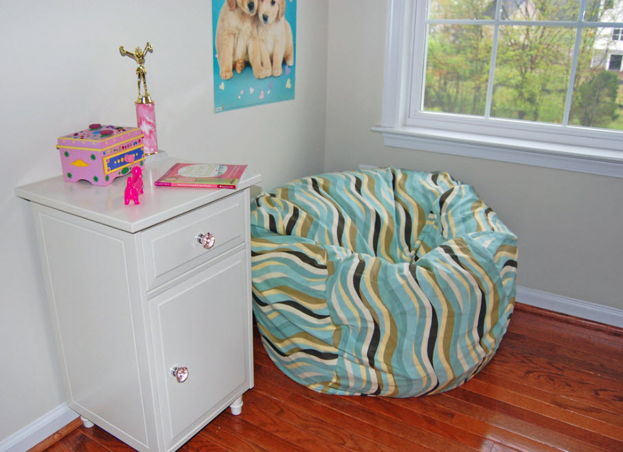 إن استخدام كيس الفول في غرف الأطفال (غرف النوم واللعب) هو الاستخدام الأكثر شيوعًا للأثاث بدون إطار.