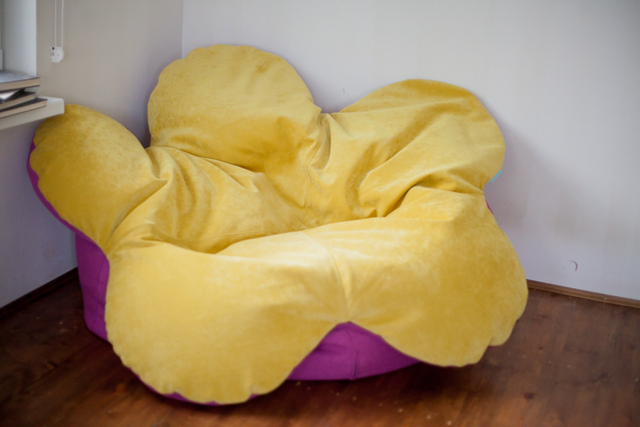 بدرجات متفاوتة من ليونة في كرسي–حقيبة وضع مختلف حشو. إنها مادة تعطي الشكل لقطعة من الأثاث تتغير تحت تأثير الحمل.