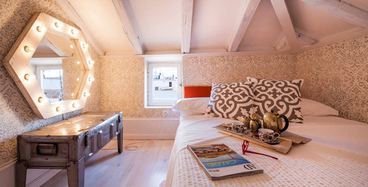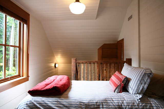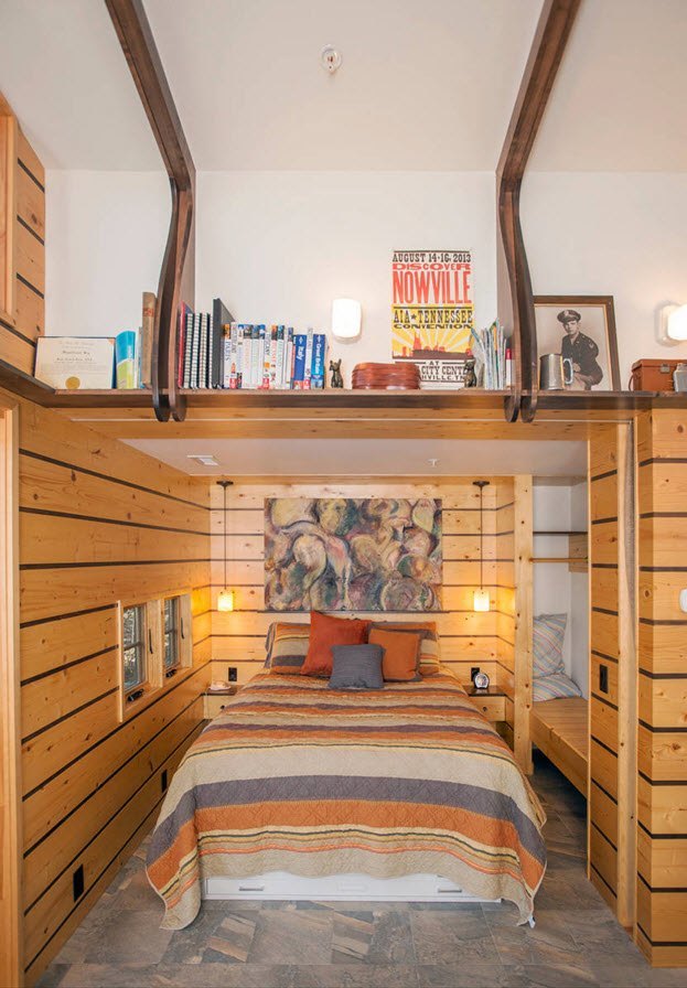 غرفة النوم الصغيرة ذات الطراز العلوي مناسبة لمنزل ذي أسقف عالية