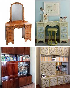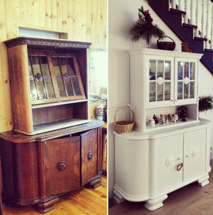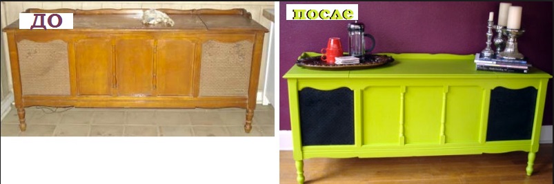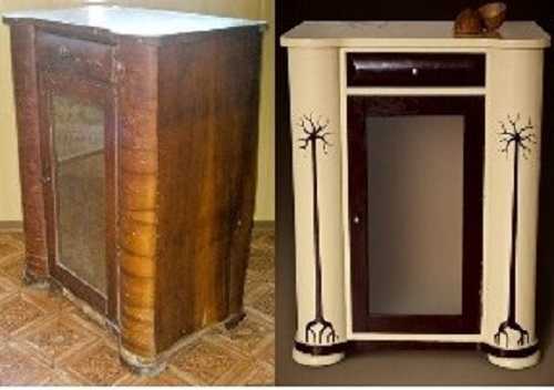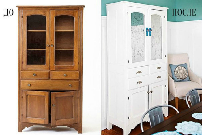 يمكنك تحديث أي أثاث قديم. وهي مصنوعة من الخشب الجودة ، وسوف يكون دائما في الطلب. بعد تنفيذ الإجراءات اللازمة للتغيير ، سيكون هناك أعمال فنية حقيقية في منزلك. من الخزانة القديمة بعد التنظيف والمعالجة والطلاء والديكور ، ستحصل على شيء أنيق. يمكنك صنع أريكة خارجها ، وتحويلها أسفل طاولة للمرآة. إعادة الجزء السفلي من مضمد تحت مكان للحيوانات الأليفة.