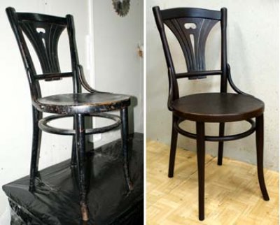 تحتاج أولا إلى إزالة الطلاء القديم. إذا كان المقعد طريًا ، فسيتم إزالته أيضًا. ثم الصنفرة ، يمكن أن يكون أي حصى ، معالجة السطح. على طريقة تلميعك ، سيعتمد ذلك على كيفية سقوط السطح الآخر. سيكون العمل أسهل قليلاً إذا كنت تبلل السطح. عادة من مثل هذا الإجراء ، الطلاء القديم هو لزج. دع الكرسي يجف ومرة أخرى تخطى الصنفرة ذات الحبيبات الدقيقة.