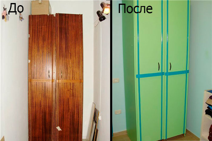 - لا ترغب في إجراء أي تغييرات ، ولكن يجب تحديث الجدار ، وتحتاج إلى فكه تمامًا ، وإزالة السحابات والملحقات. نحن نظيفة ، وإزالة الطلاء القديم. باستخدام اللصق والتمهيدي الضروريين ، أغلق الشقوق والرقائق والخدوش. جميع المجففة وطحن. غير راضٍ عن لون الجدار ، ثم إعادة الطلاء ، ثم قم بتغطيته بورنيش غير لامع. بعد التجفيف ، نجمع الجدران ونغير المقابض والمفصلات. هل تريد وضع الابواب الحديثة.