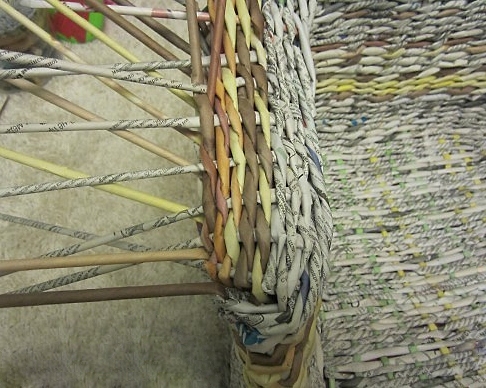تحذير! من أجل جعل المنتج متينًا ودائمًا وأنيقًا ، عند إجراء النسيج ، من الضروري التحقق باستمرار من كيفية سقوط صفوف الروطان. بالإضافة إلى ذلك ، لا يمكنك المبالغة في ذلك حتى لا تجر أحد الأطراف ، وإلا فإن النتيجة لن ترضي: المنتج سوف ينحني ، سيكون من المستحيل استخدامه.