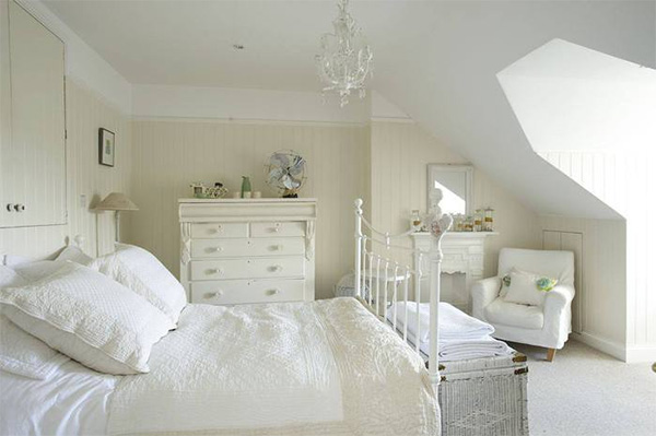 تصميم غرفة نوم بيضاء في أسلوب بساطتها
