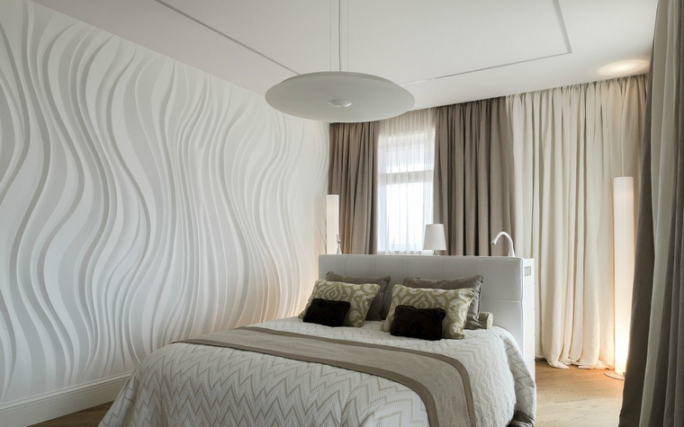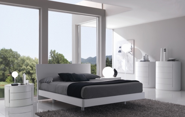 الألوان التالية ستكون متناغمة مع الأثاث الأبيض في الداخل الحديث: الأرجواني والأزرق والبني والرمادي والبيج. مع الأسود والأحمر ، كن حذرا. بعد كل شيء ، تم تصميم غرفة النوم للاسترخاء ، والمجموعات العدوانية المتناقضة للغاية ستحفز النفس.