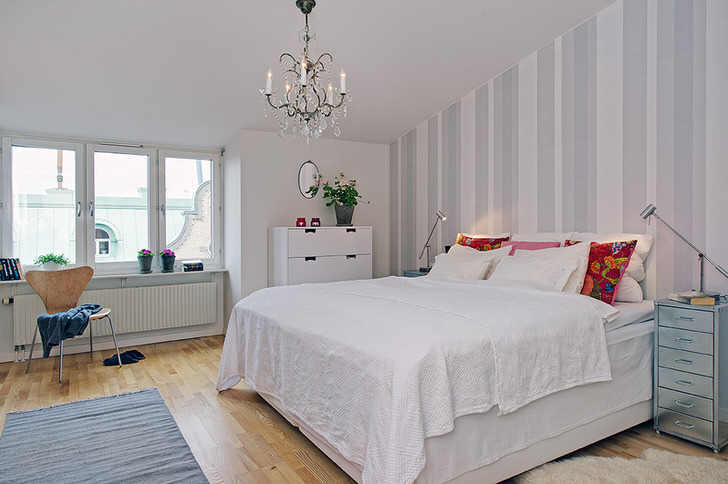 التصميم الداخلي لغرفة النوم ذات اللون الأبيض على الطراز الاسكندنافي