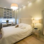 يجب أن لا يكون الضوء ساطعًا جدًا ، لأن سوف اللون الأبيض زيادة تعزيز التأثير. الثريا في وسط السقف مع ظلال مغلقة ، بلوري - الإضاءة الرئيسية. لمصابيح السرير المحلية المناسبة ، ومصابيح الأرضية ، والمصابيح الكهربائية على حافة المرآة.
