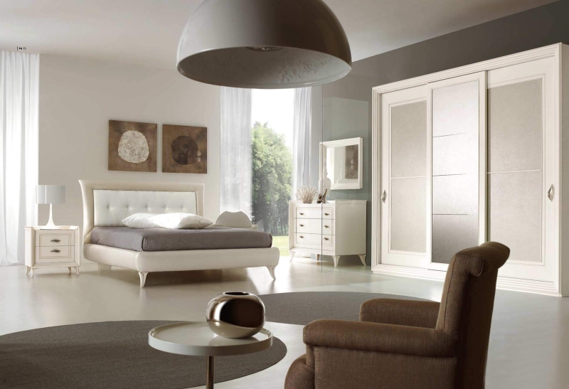 الأثاث الأبيض يمكن أن يسمى بحق. يتم دمجها بسهولة مع النغمة العامة لغرفة النوم ، في انسجام مع عناصر الديكور والاكسسوارات ، رهنا بأي أفكار التصميم.