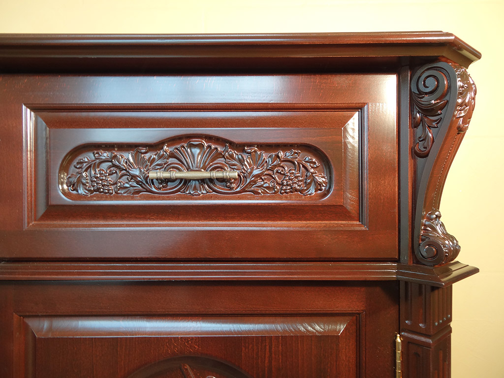 - نحت الإغاثة. الزخرفة الأكثر إثارة وتعقيدًا للأثاث ، حيث تكون الخلفية تحت الزخرفة.