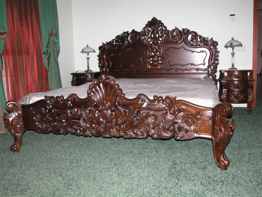 سرير خشبي فخم ومهيب ، مصنوع على الطراز الباروكي الداخلي