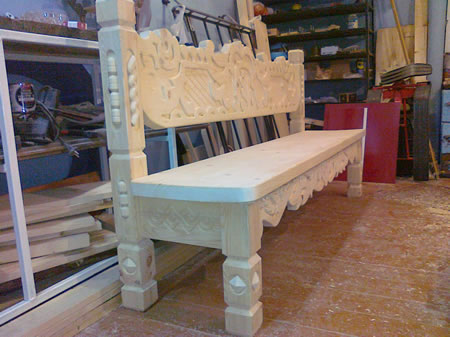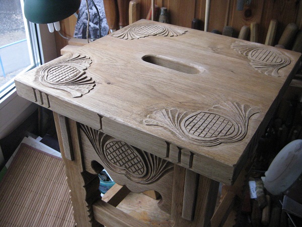 الأثاث المنحوت بأيديهم ، الرسم الذي تحتاج إلى تحضيره مقدمًا ، يتم في تسلسل صارم. في المرحلة الأولية ، لا تختلف عملية الإنتاج عن أعمال النجارة العادية.