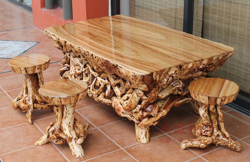 كراسي منحوتة وطاولة مع هيكل الخشب الطبيعي