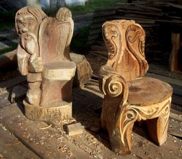 بعد اكتساب مهارات صغيرة ، سيمنحك العمل متعة كبيرة. سوف الكراسي المنحوتة تناسب أي تصميم للغرفة. أيضا ، سوف تكون قادرا على توفير المال عن طريق رفض شراء أثاث الجاهزة.