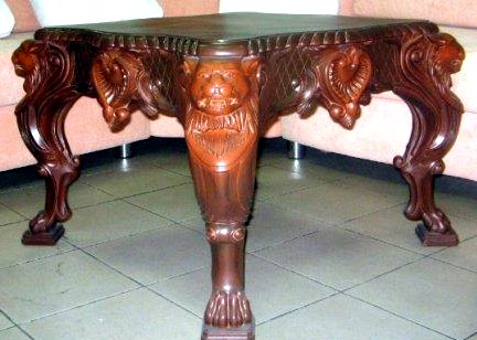 - نحت في نمط النحت. يستخدم للتطبيق على قطع الأثاث الكبيرة. من الصعب تنفيذ العمل. في الواقع ، يتم إنشاء تمثال خشبي يمكن استخدامه كقطعة أثاث.