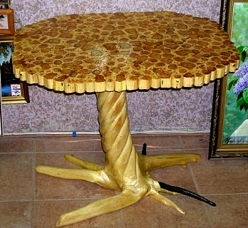بالإضافة إلى ذلك ، قد يحتوي النموذج المطبق على سطح المنتج على إشارات إلى اسم العائلة. بعد ذلك ، مع التشغيل الدقيق ، يمكن وراثة المنتجات المصنوعة يدويا. قبل أن تصنع طاولة منحوتة من الخشب أو أي قطعة أثاث أخرى ، يجب أن تقرر تصميمها.