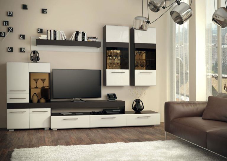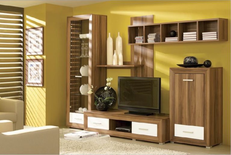 في معظم الحالات ، تكون مجموعة أثاث غرفة المعيشة دائمًا هي نفسها: أريكة أو تلفزيون أو طاولة قهوة أو جدار. ولكن إذا سمحت المساحة ، فسيتم إضافة رف مكتبة قياسي وميني بار ومنطقة لتناول الطعام إلى المجموعة القياسية.