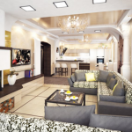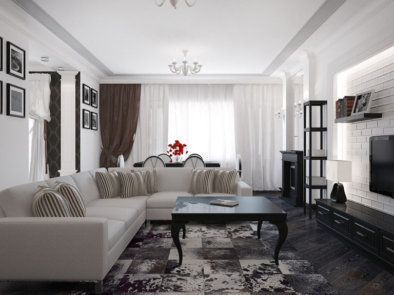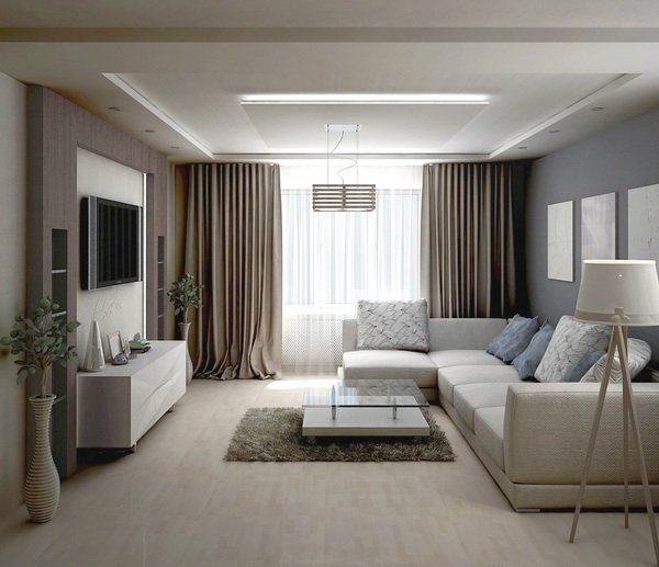 ترتيب الأثاث في غرفة معيشة مستطيلة - المهمة أسهل مقارنة بالإصدار السابق من التصميم. ولكن يوصى باتباع قواعد معينة لخلق جو متناغم.