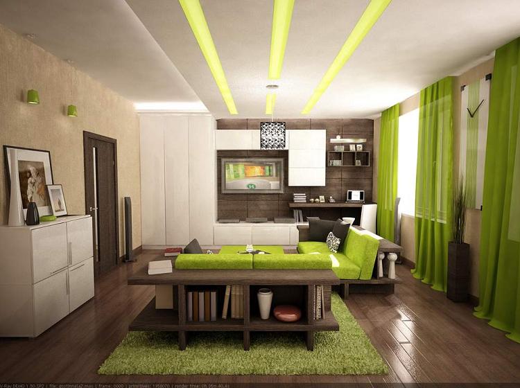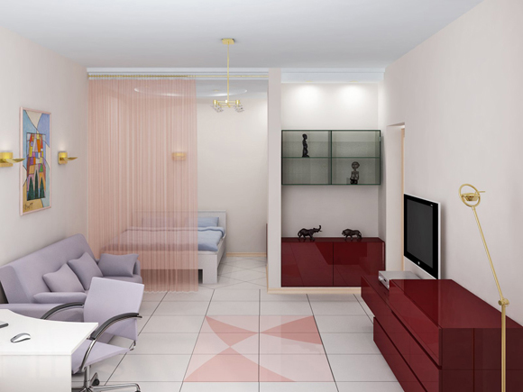 تخطيط قطري لغرفة المعيشة - خيار للشقق استوديو أو غرف مجتمعة