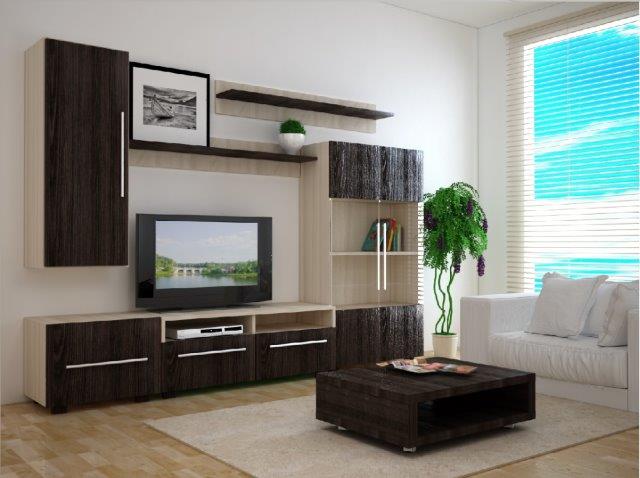 - يتم اختيار جميع العناصر وفقًا لأبعاد الغرفة: لغرف المعيشة الصغيرة - المدمجة ، للغرف الواسعة - الكبيرة.