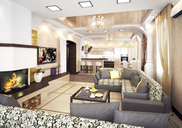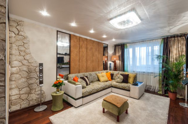في الأساليب الحديثة للتغلب على مثل هذا العيب هو ممكن تماما ، وتحويل الطرح بدلا من الميزة الأصلية لغرفة المعيشة. أفكار للترتيب الناجح للأثاث يمكن أن تكون عدة.