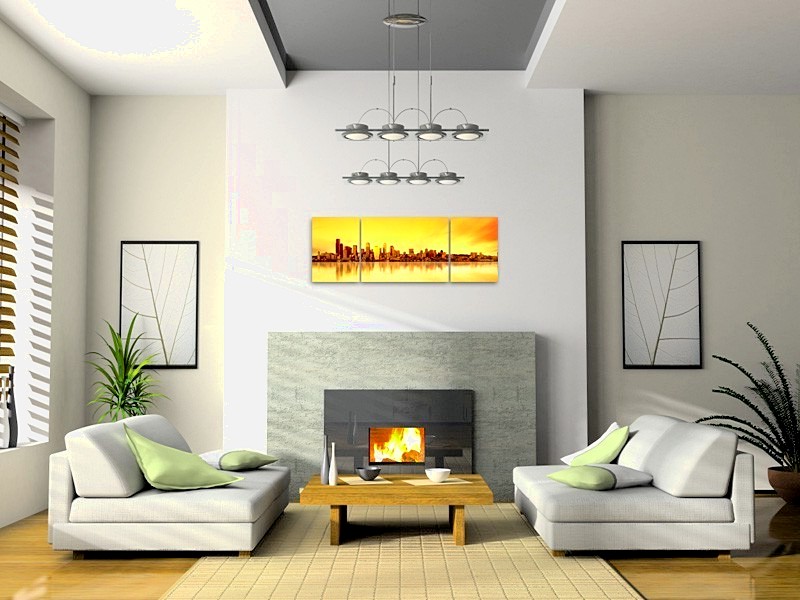 لوسط الغرفة يؤخذ أي عنصر من عناصر الوضع. يمكن أن يكون جهاز تلفزيون ومدفأة وحامل الحائط للمسرح المنزلي ، إلخ. يتم وضع عناصر الأثاث على نفس المسافة من نقطة البداية المختارة.