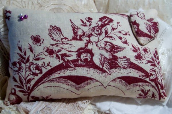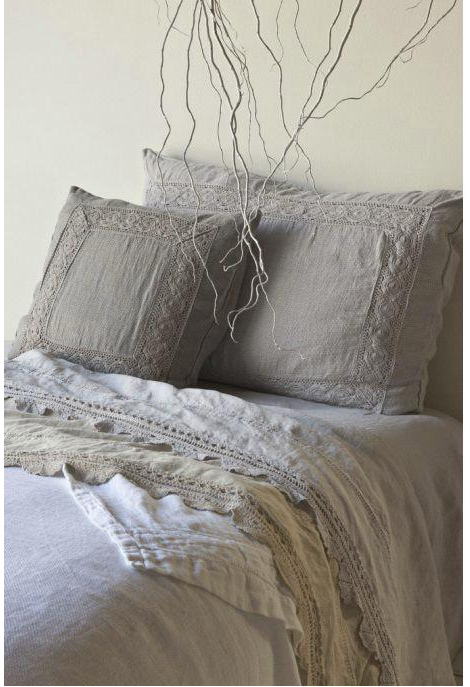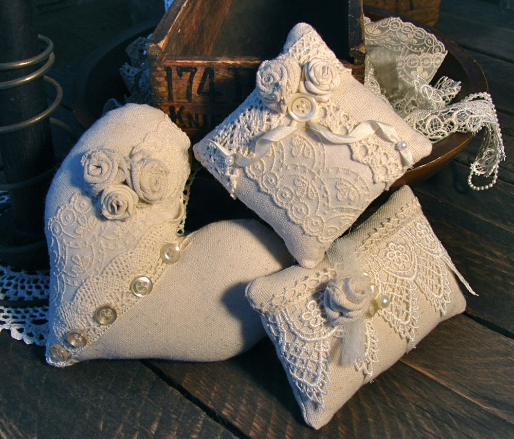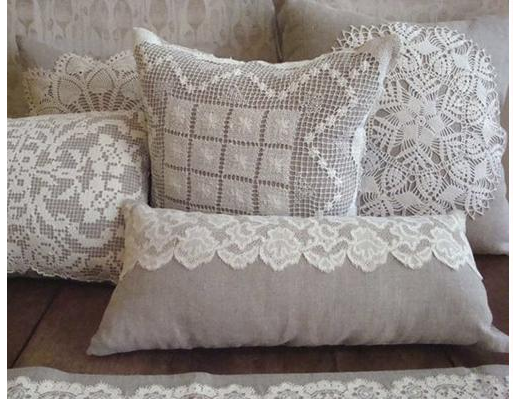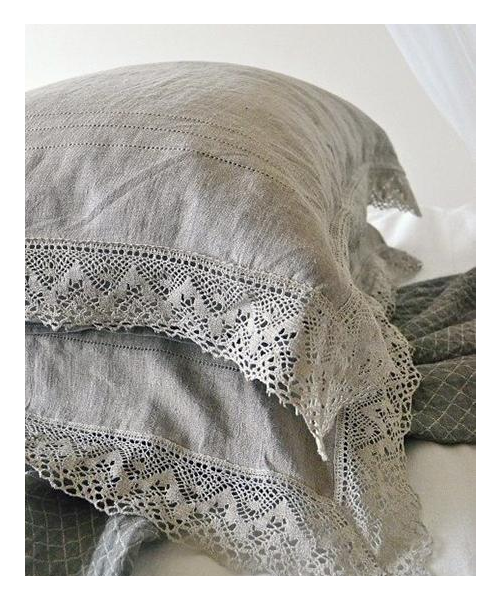 وسادة من الكتان مع الدانتيل ، مزينة بأسلوب بروفانس