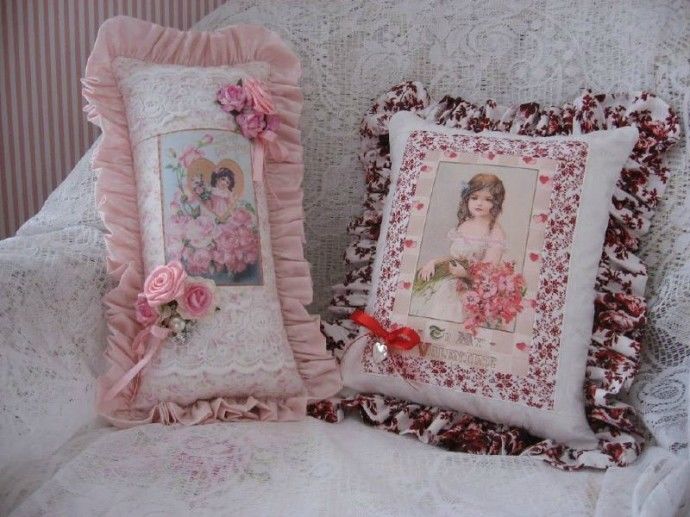تطريز لطيف ورومانسي على الوسائد بأيديهم بأسلوب بروفانس