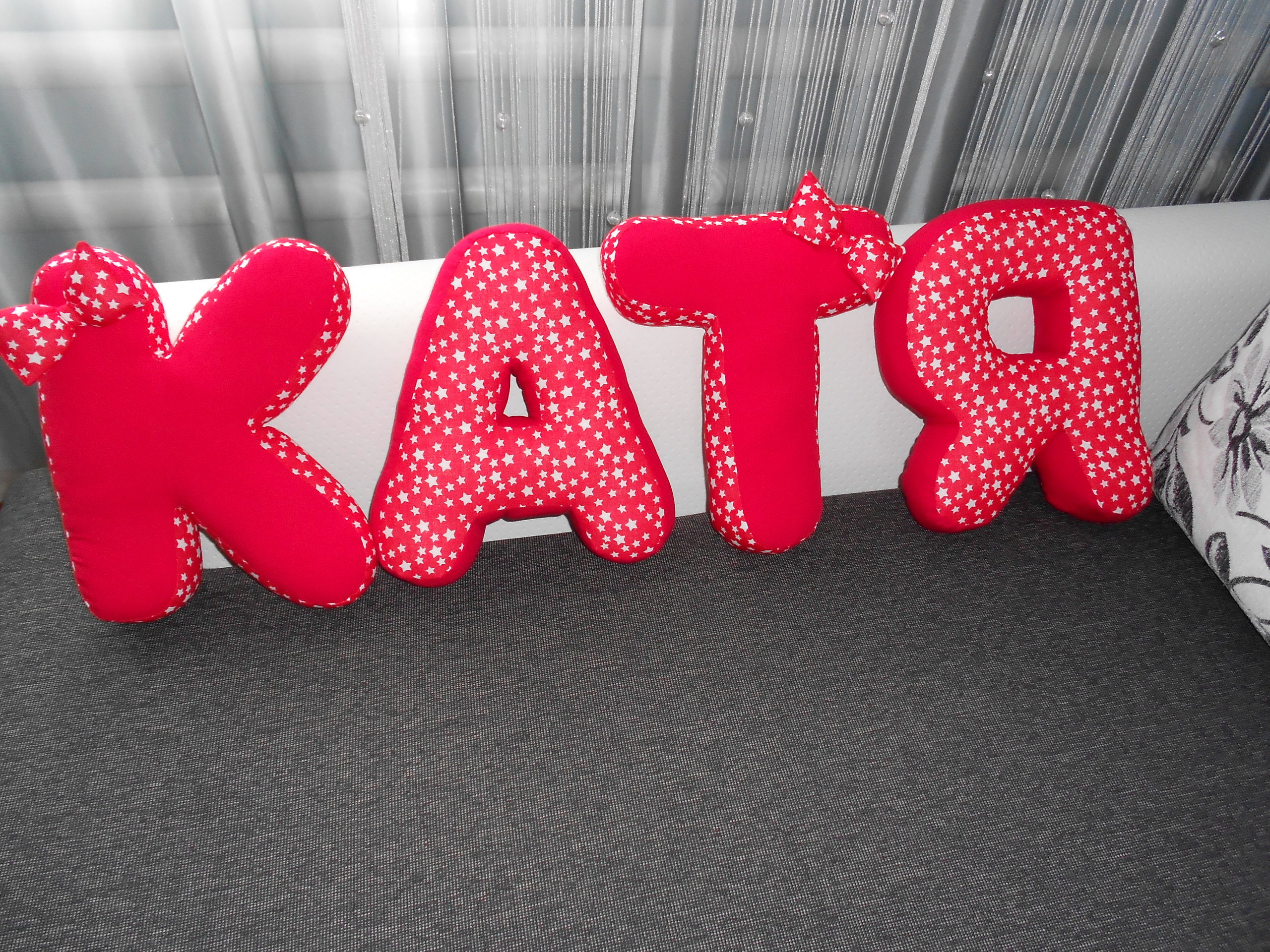 يجب أن تكون الوسائد على شكل أحرف كبيرة بالضرورة ، لذلك ينصح بإعداد عدة أنواع من القماش: للقاعدة وللجانبين.