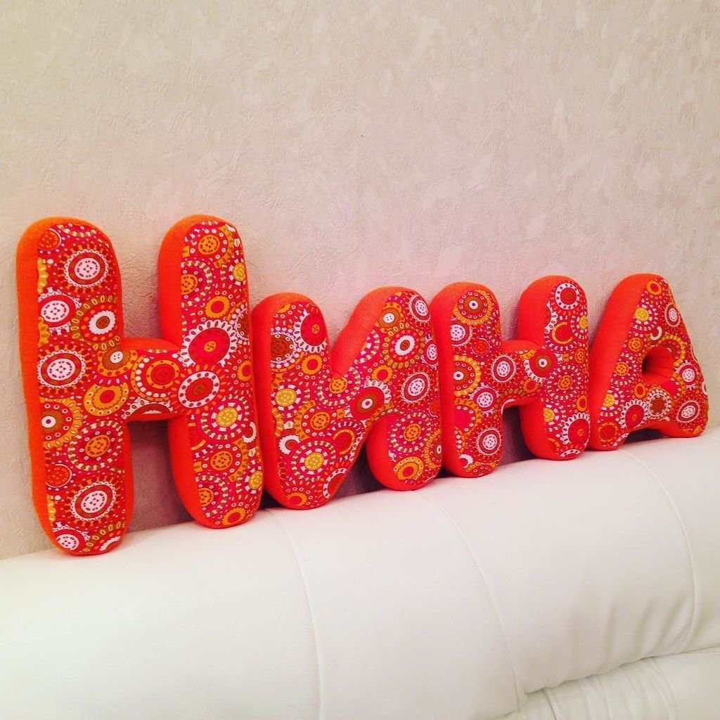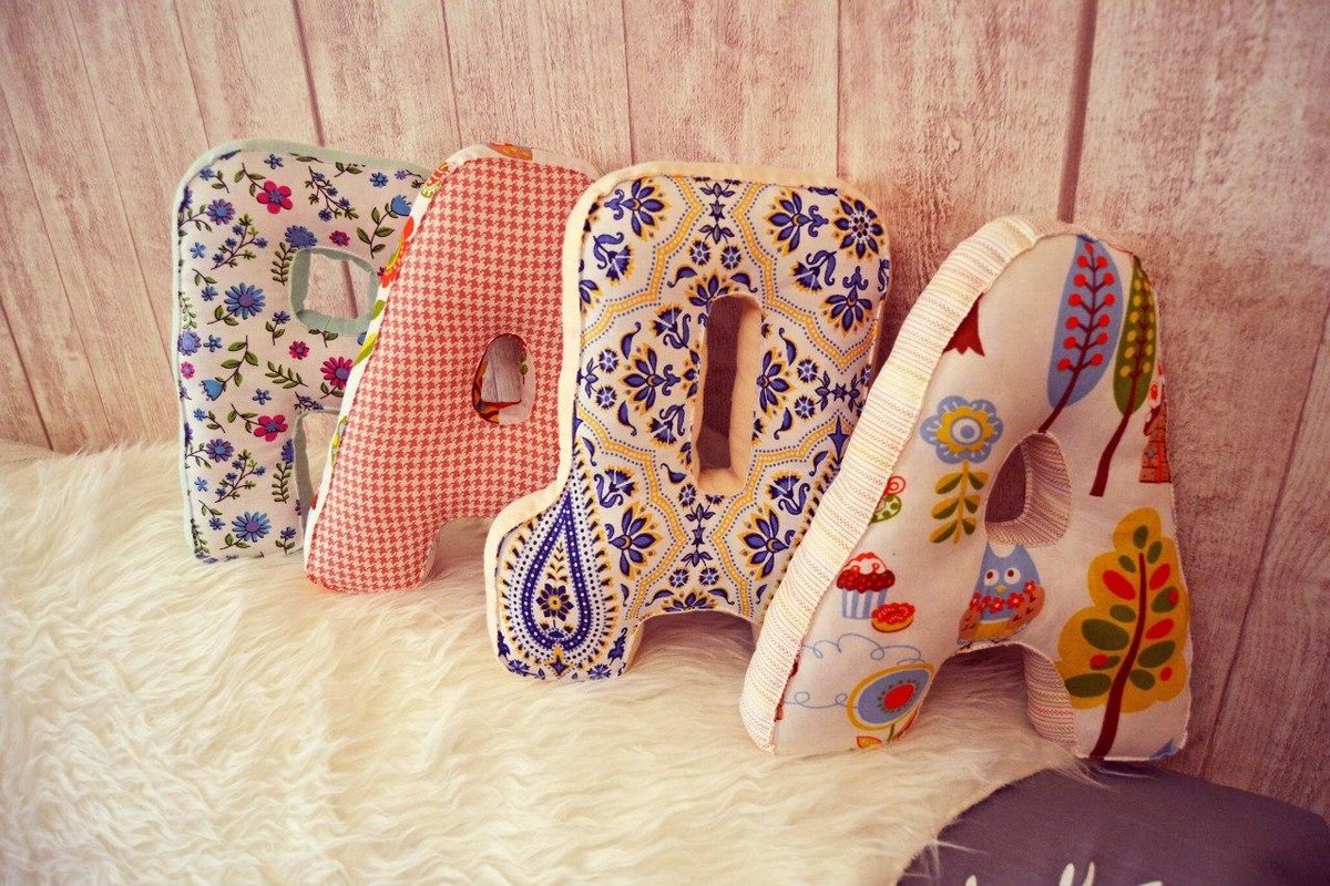 الوسائد في شكل خطابات مختلفة أو كلمات كاملة هي الاتجاه السائد حالياً والذي يمكن أن يزين الحضانة ، وغرفة نوم البالغين ، ليصبح الهدية الأكثر أصالة لأي عطلة.