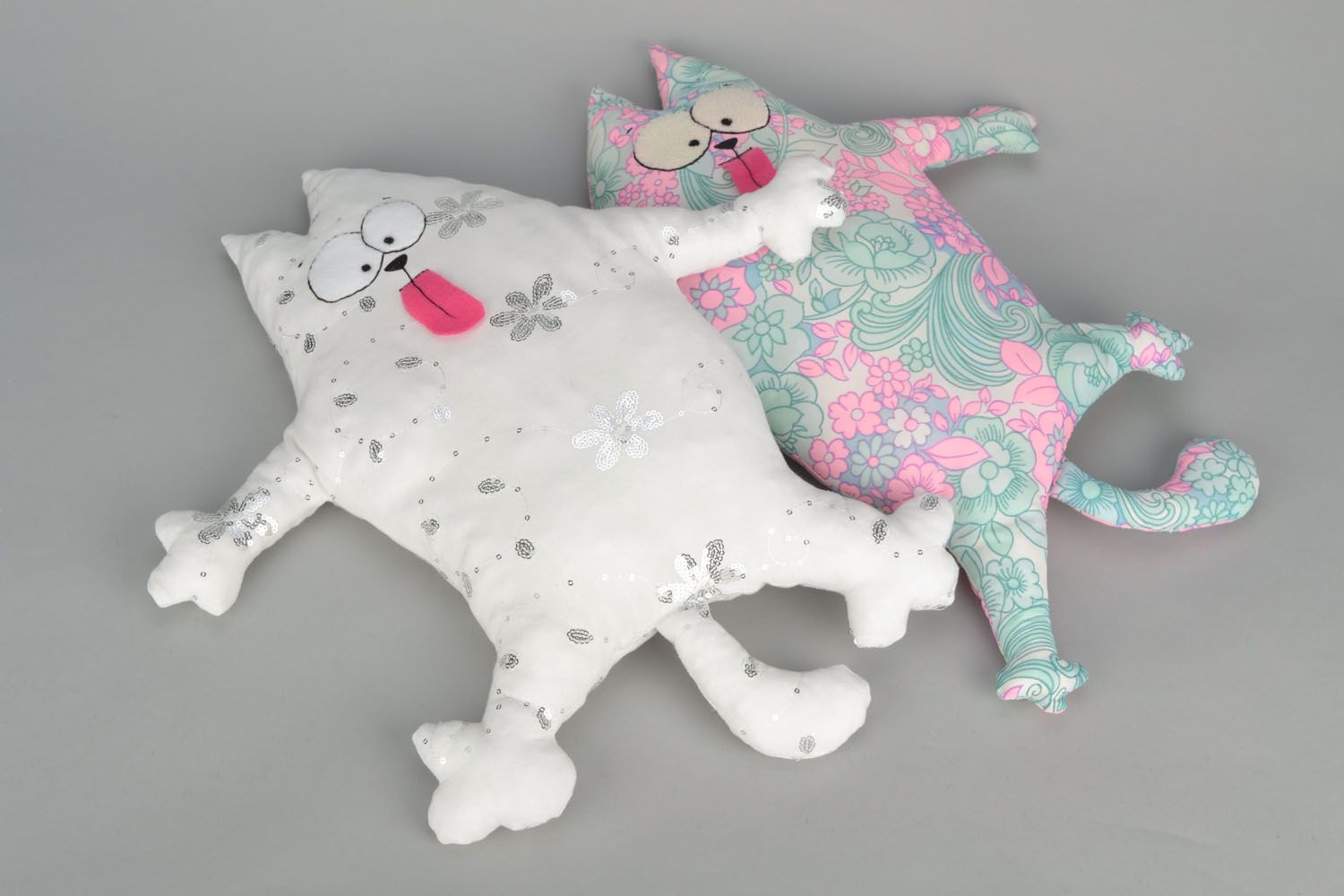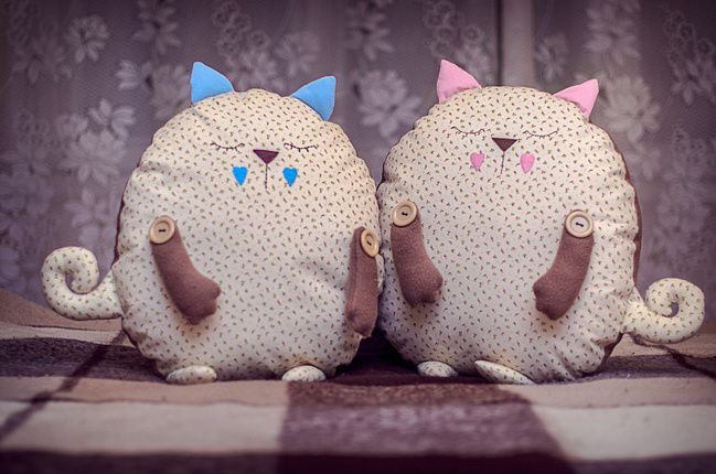 في هذه الحالة ، يمكن أن تكون صورة القط على الإطلاق. ولكن من الأفضل أن ننظر إذا ، على سبيل المثال ، يجلس اثنان من الأختام على وسادة. يمكن أن تكون موجودة بالقرب من بعضها البعض - هذه هي الطريقة التي يمكن أن تجعل "عشاق القطط". ويمكنك ، على العكس من ذلك ، نشر الصورة على جوانب مختلفة من الوسادة ، وتحويل ظهورها إلى بعضها البعض. نحصل على - "القطط المهانة".