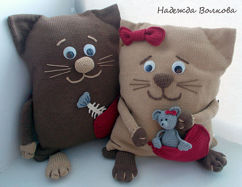 إذا كانت لديك خبرة في الحياكة أو الحياكة ، فيمكنك صنع وسادة على شكل قطة من الخيوط. ويمكنك استخدام بقايا خيوط مختلفة الألوان. يجدر النظر لحظة واحدة! إذا كنت متماسكاً ، فستكون الوسادة ناعمة ، لذلك يمكن استخدامها للترفيه.