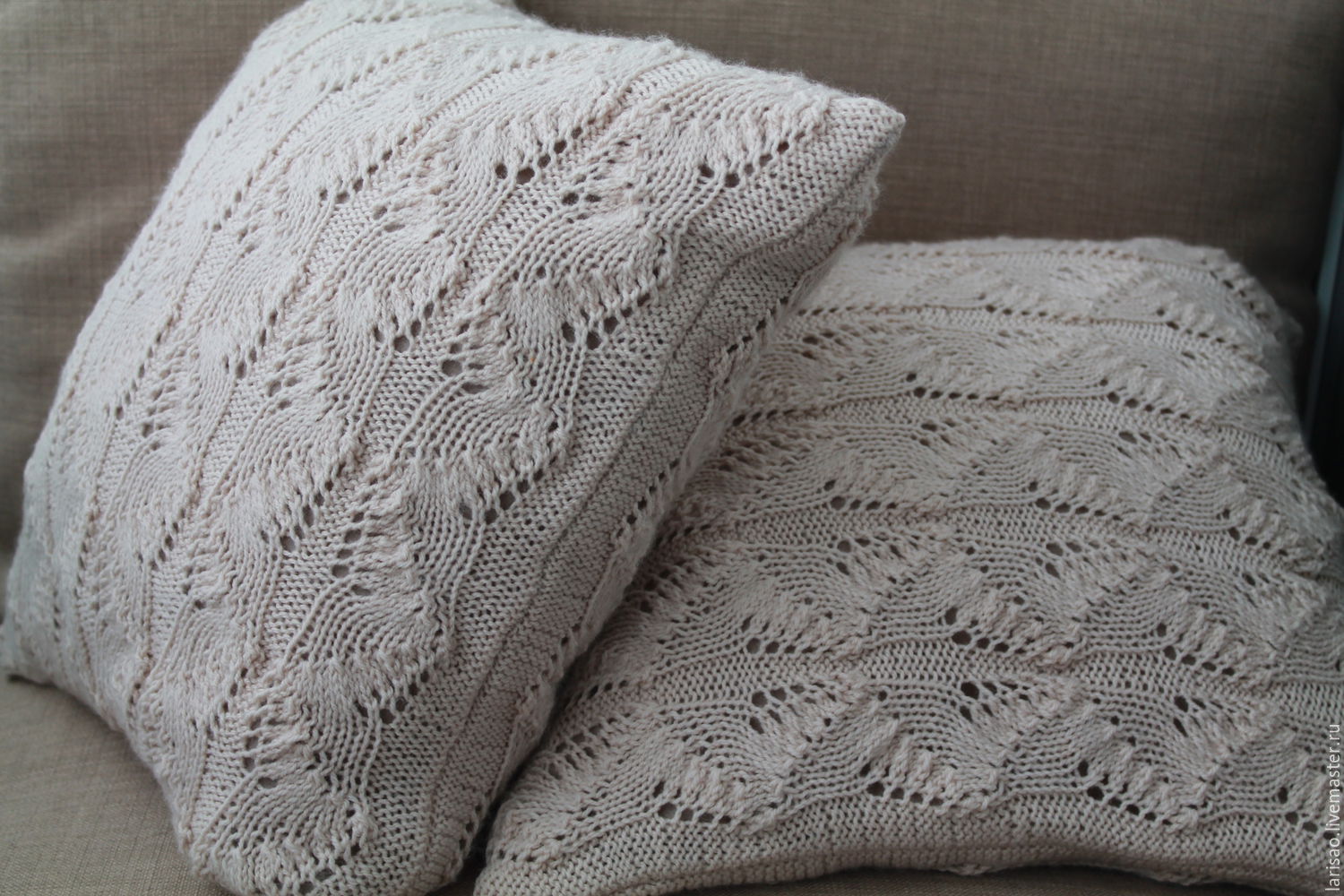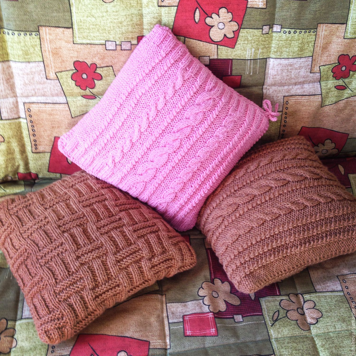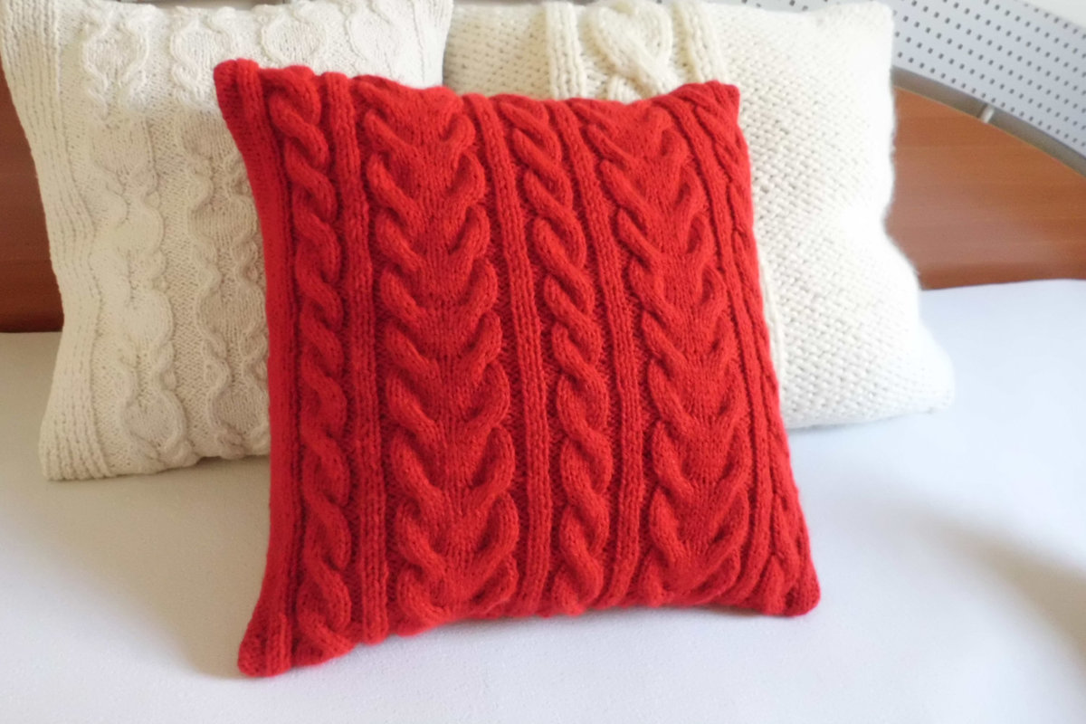 الوسائد محبوك مع أنماط الحياكة والأوصاف