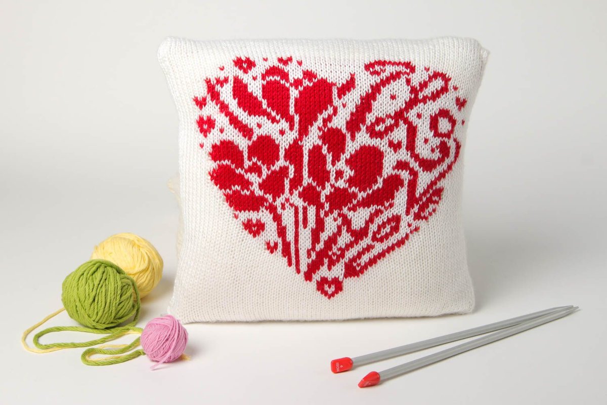 الوسادة هي سمة أساسية للنوم الليلي والراحة أثناء النهار وكذلك الديكور الداخلي لغرفة النوم وغرفة المعيشة والحضانة. وسادة أصلية وناعمة ودافئة مع إبر الحياكة ، مربوطة بأيدي المرء ، تمنح الغرفة راحة المنزل ، وتجعل المنزل مريحًا ، دافئًا حتى في الشتاء البارد.