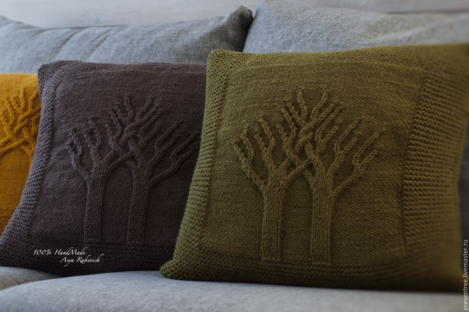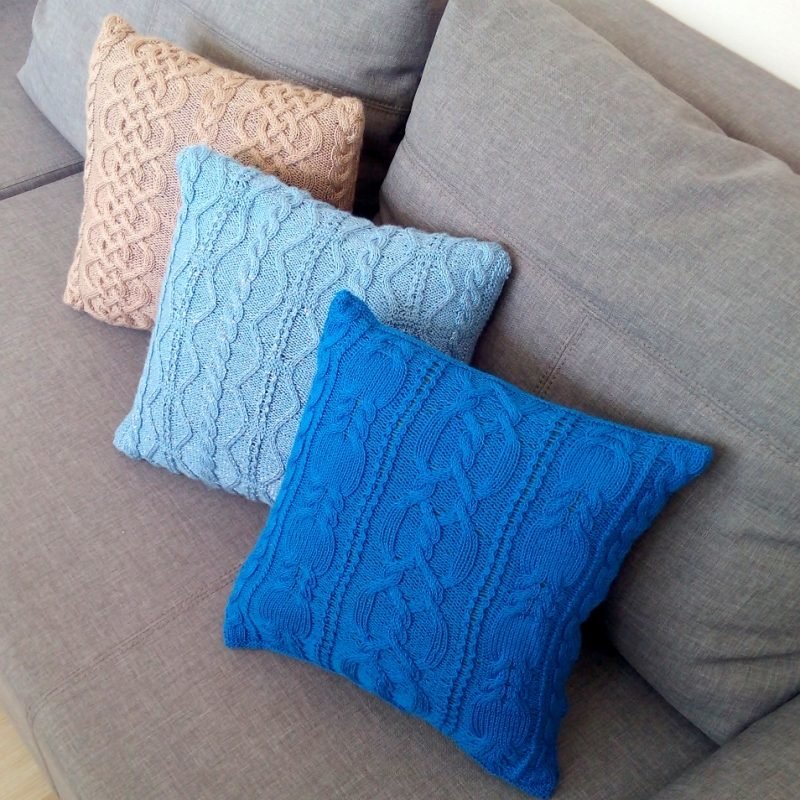 الوسائد على الأريكة ، محبوكة ، يمكن أن تؤكد على مزايا الداخلية.