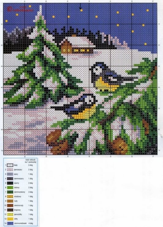 زخرفة أحادية اللون لا تفقد شعبيتها. على سبيل المثال ، منظر طبيعي لموضوع الشتاء ، مطرز بخيط واحد.