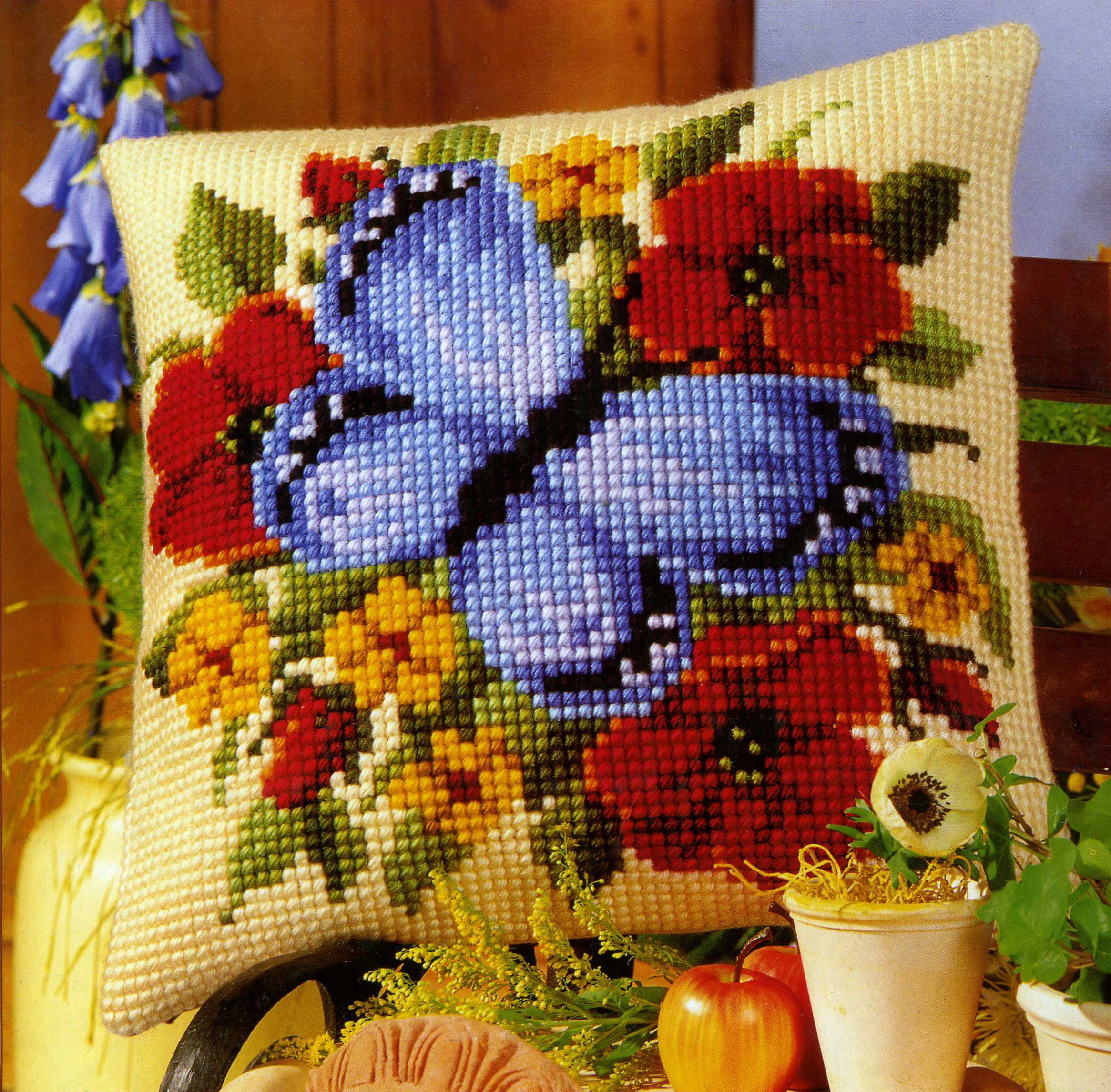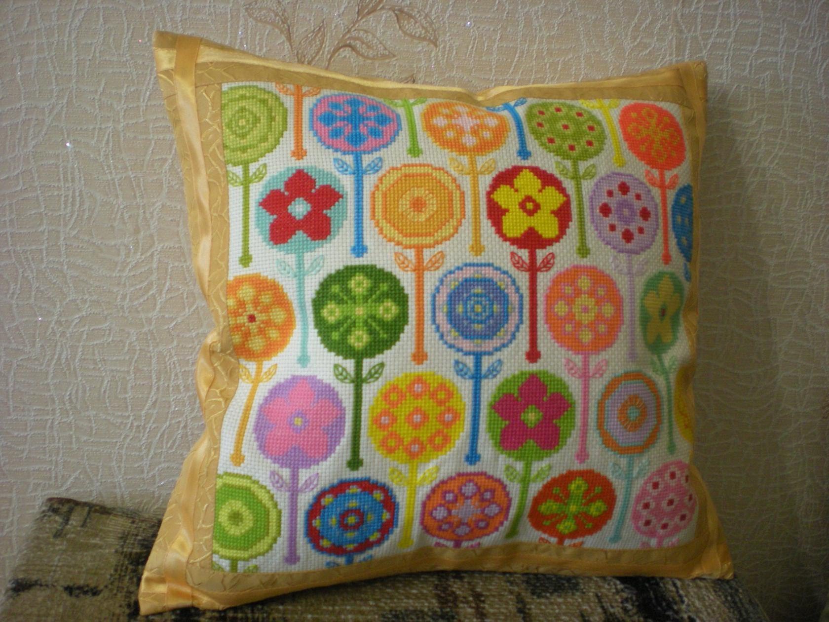 يمكن أن تكون الوسادة ، المزينة بغرزة متقاطعة ، هدية ممتازة للأقارب والأقارب.