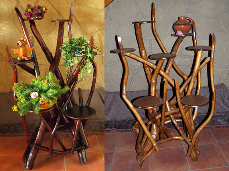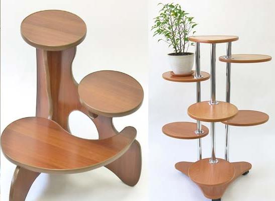 مصنوعات خشبية تحظى بشعبية كبيرة. ولكن في تشغيل الأثاث ليست مريحة. عندما تسقي النباتات ، غالباً ما تسقط المياه على سطح الحامل ، اللوحة ، يمكن أن تتعفن وتنتفخ. إذا قررت بناء رف خشبي ، فيجب معالجته بعناية وتغطيته جيدًا بورنيش سطح خاص.