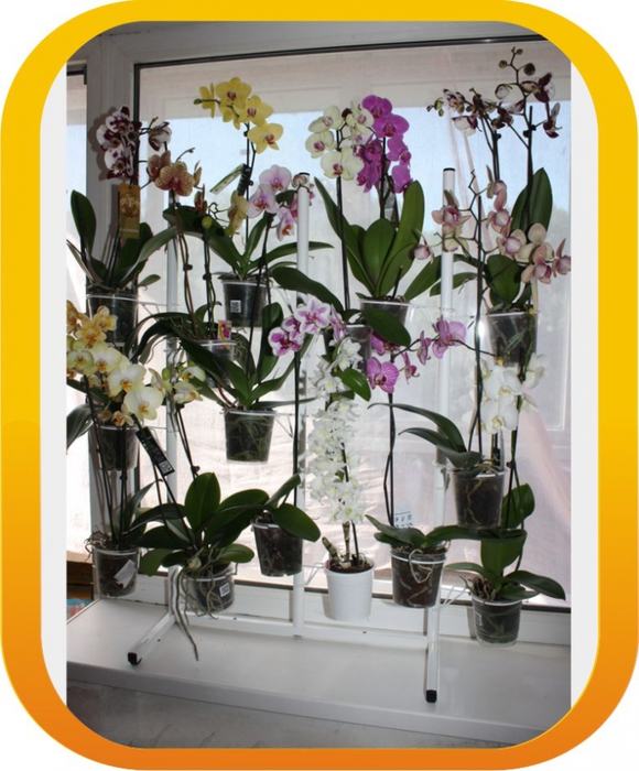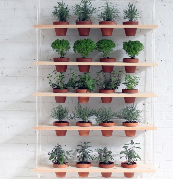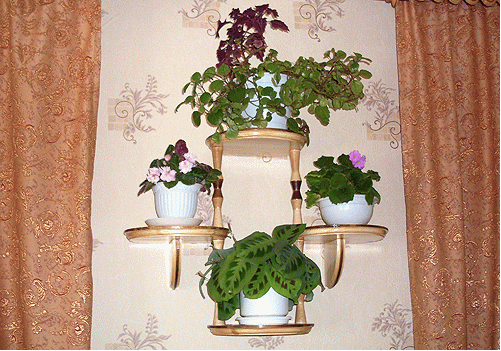 عادةً ما يتم تعليق الخيار الثاني على الحائط. يمكن أن تستوعب خيارات الأماكن المتعددة ما يصل إلى 5-7 مزهريات. زائد كبيرة في الاكتناز والقدرة الكبيرة.