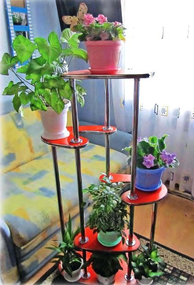 إنشاء أثاث خارجي للنباتات ، من الممكن مراعاة الفروق الدقيقة لوضعه.قم بالبناء بحيث لا يتدخل الحامل الموجود أسفل الزهور تحت قدميه ، ولم يكن عليه الالتفاف. يمكنك إنشاء بنية منزلقة أو متحركة ، والتي يمكن نقلها في أي وقت إلى المكان الصحيح.