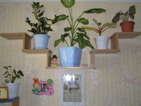 إذا كانت المساحة الحرة الوحيدة للأثاث هي الزاوية. لن تؤذينا! هناك مرافق ركن خاصة ستساعدنا. سوف يدخلون الزاوية تمامًا ويحملون 5-7 مزهريات. يتم وضع الأثاث على الجدران والأرضيات.