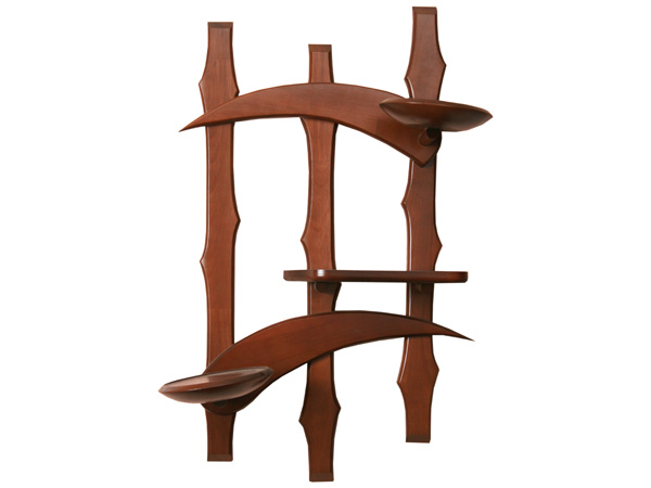 رف خشبي مغطى بالورنيش والبريق. هذا يعطي تألق وتألق للمنتج.